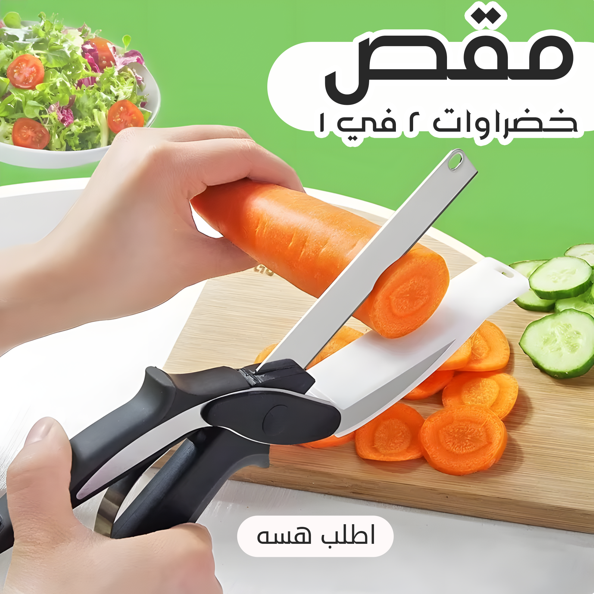 قطع، فرّم، واشتغل براحتك! 🍅🔪 مقص الخضراوات 2 في 1 يخليك تشتغل بأسرع وأسهل طريقة من غير ما توسّخ المطبخ! 🥗🔥”– أسرع وأذكى طريقة للتقطيع!